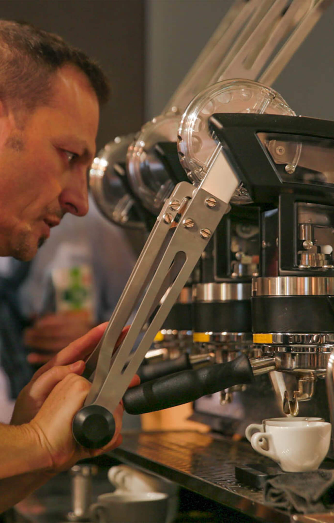 Die Leva stellt die Frage nach der optimalen Form einer Handhebel-Espressomaschine neu. Es muss nicht mehr auf Sicherheit verzichtet werden, damit ein Café die Hebeltechnologie nutzen kann. Die Hebelgruppe gibt den Blick frei auf die faszinierende Mechaniken. Die Leva bietet bahnbrechendes Design und Technologie in einer mechanischen, zuverlässigen und benutzerfreundlichen Maschine. Das innovative Design reduziert die zum Betrieb der Maschine erforderliche Kraft um fast 50% im Vergleich zu einer traditionellen Handhebelmaschine und führt gleichzeitig ein Sicherheitskupplungssystem ein. Mit der Leva-Maschine ist es möglich, sowohl den Präinfusionsdruck als auch den maximalen Extraktionsdruck, der vom Hebelkolben geliefert wird, anzupassen, was eine Personalisierung des Brühens ermöglicht und konsistente Shots erzielt. Mit über 2500 Stunden Tests setzt die Leva einen neuen Standard für die Zuverlässigkeit eines mechanischen Systems.
