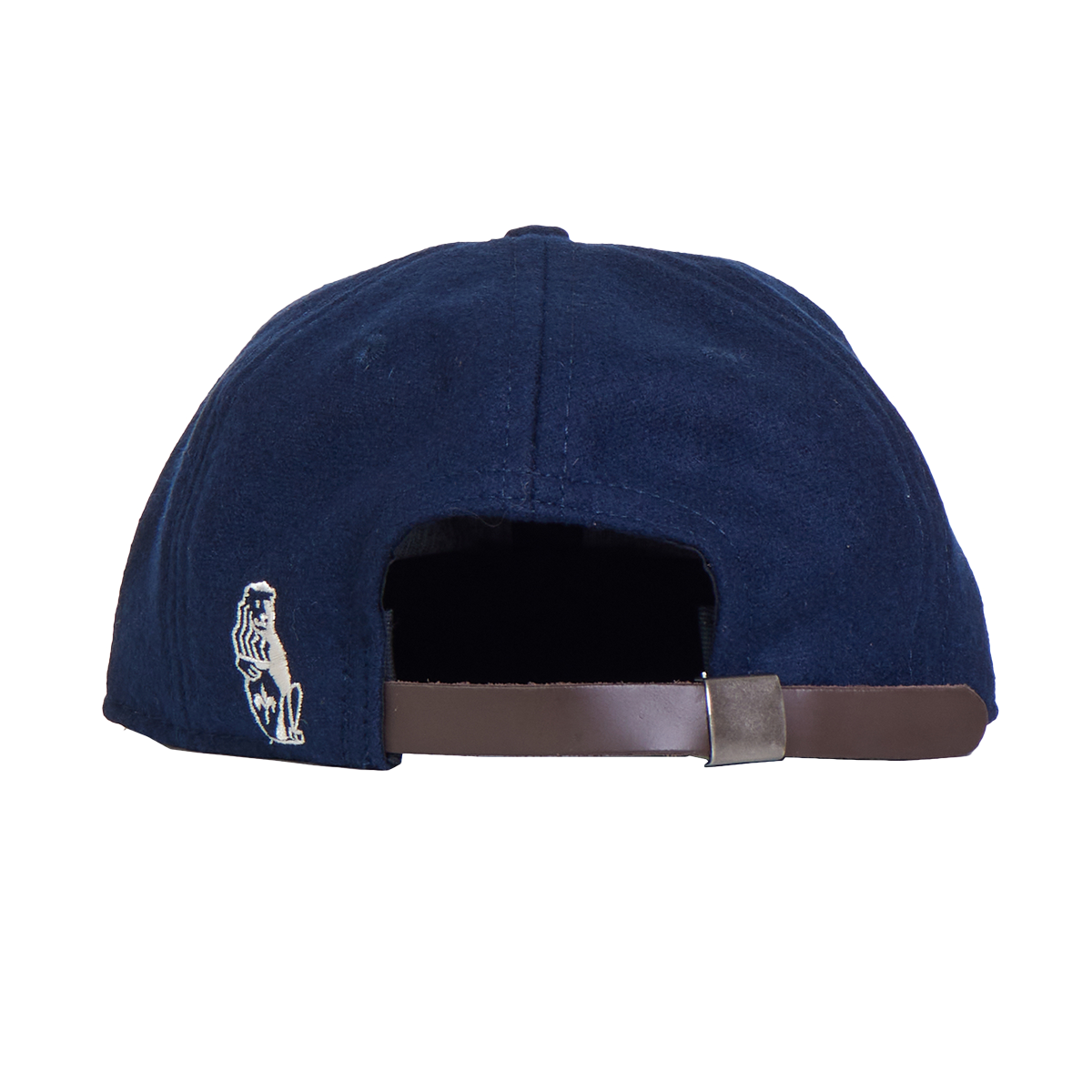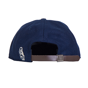 Hergestellt aus: marineblauer Wolle, weißem Filz, braunem Leder
