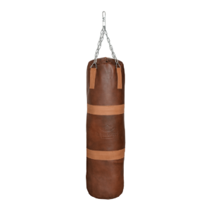 Ein handgefertigter Leder-Boxsack im Vintage-Look, der sich perfekt für deinen Fitnessraum zu Hause und deine Workouts eignet.