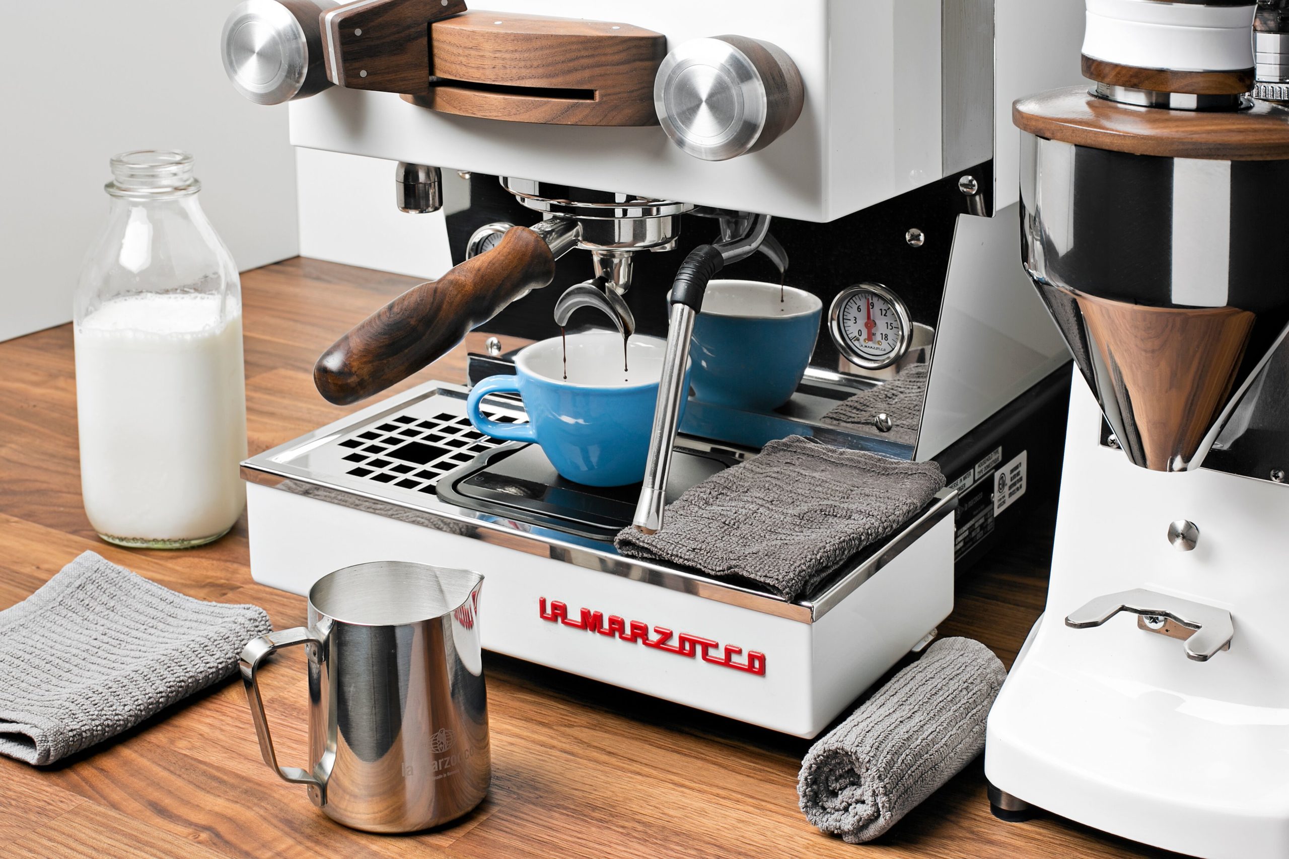 Profi-Baristas wissen, dass alles einen Platz und einen Zweck hat, und Bartücher sind definitiv keine Ausnahme. Um Kreuzkontaminationen und ein großes, schmutziges Durcheinander zu vermeiden, benötigen Sie ein spezielles trockenes Küchentuch zum Auswischen Ihres Siebhalters, ein spezielles feuchtes Küchentuch , das ausschließlich zum Abwischen Ihrer Dampflanze dient, und ein weiteres leicht feuchtes Küchentuch für verschüttete Flüssigkeiten und Arbeitsflächen. Um der Hygiene willen, bringen Sie diese drei nicht durcheinander! Wenn Sie Schlamm vom Tresen abwischen und das Küchentuch an der Dampflanze benutzen, machen Sie sich nur Schlammppuccinos – und das will keiner. Kleine Waschlappen, Geschirrtücher oder Putzlappen sind am besten geeignet, auch wenn manche Leute mehr auf Mikrofasern stehen. Was auch immer, denken Sie daran, sie getrennt zu halten.